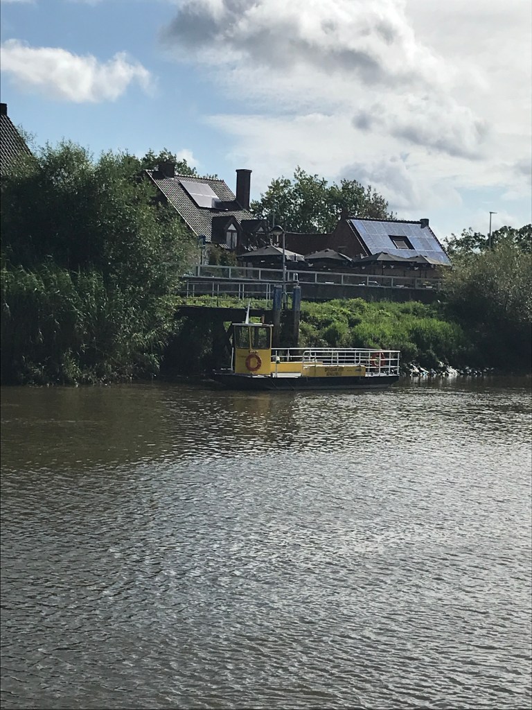 Eventjes naar de overkant met het veer, echt een openbaring, joggers en fietsers, wandelaars, allen op zoek naar dat authentieke en het licht hier in Schellebelle.