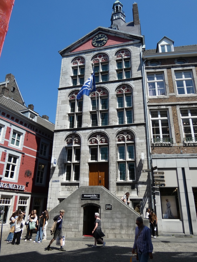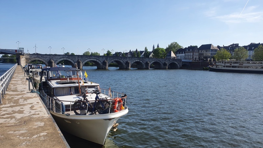 De vrije aanlegkade lokt naar de schipper, geen havengeld! De fietsen kunnen echter niet van boord, enkel te voet en minifiets. We zoeken de VVV op, ja graag een stadsplan, dat is dan 1,75€ alles wordt duurder. We zoeken het mooiste plein van Nederland, zo staat het tenminste aangegeven ‘het Vrijthof’ ‘k weet niet maar onze pleinen zijn toch wel mooier. De St. Servaasbasiliek met zijn schatkamer, boekhandel Dominicanen (voormalige kerk zeker de moeite) het stadhuis en winkelstraten! We eindigen op een terrasje met de notoire bitterballen en een biertje, het is te warm voor iets anders.