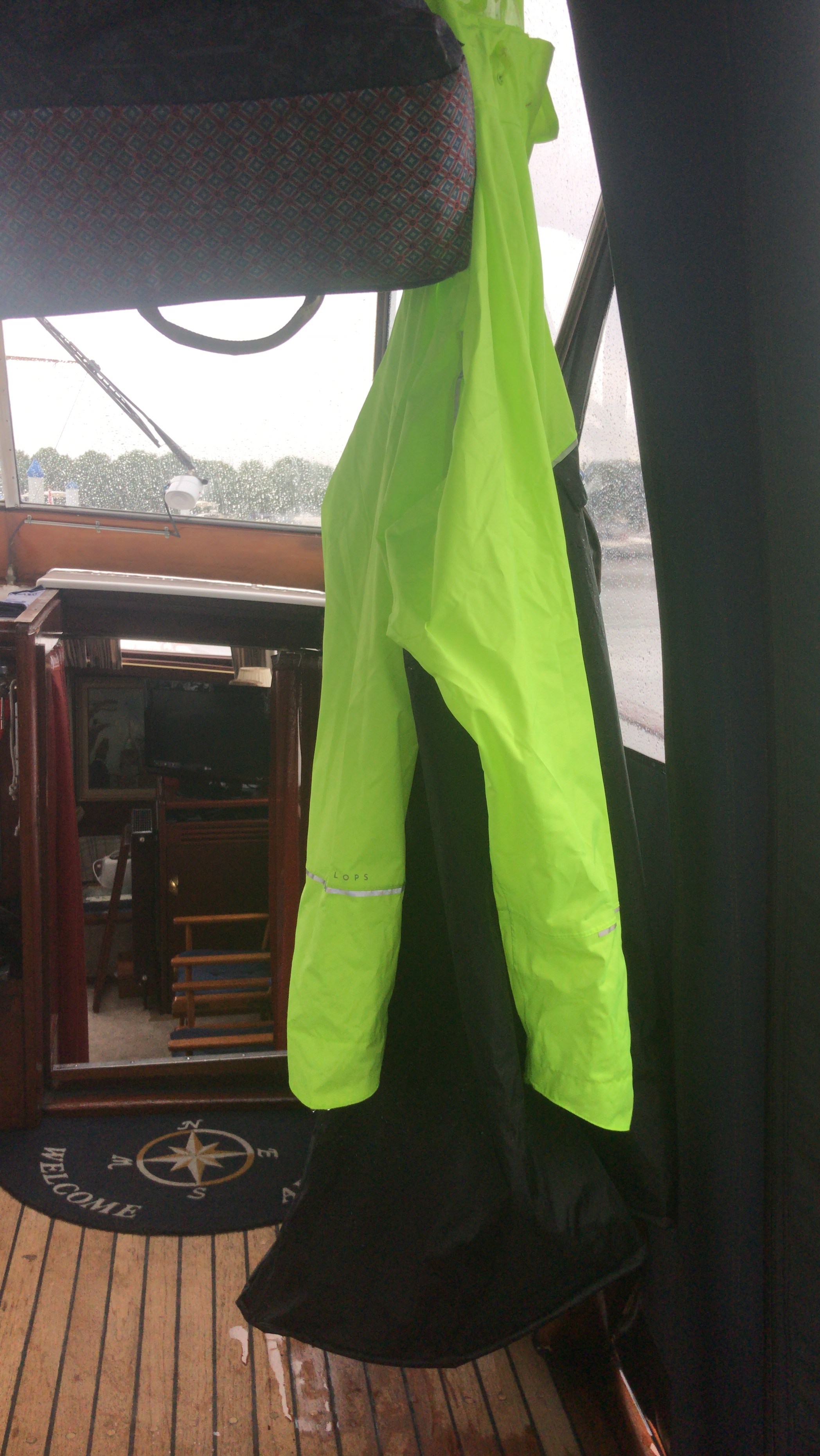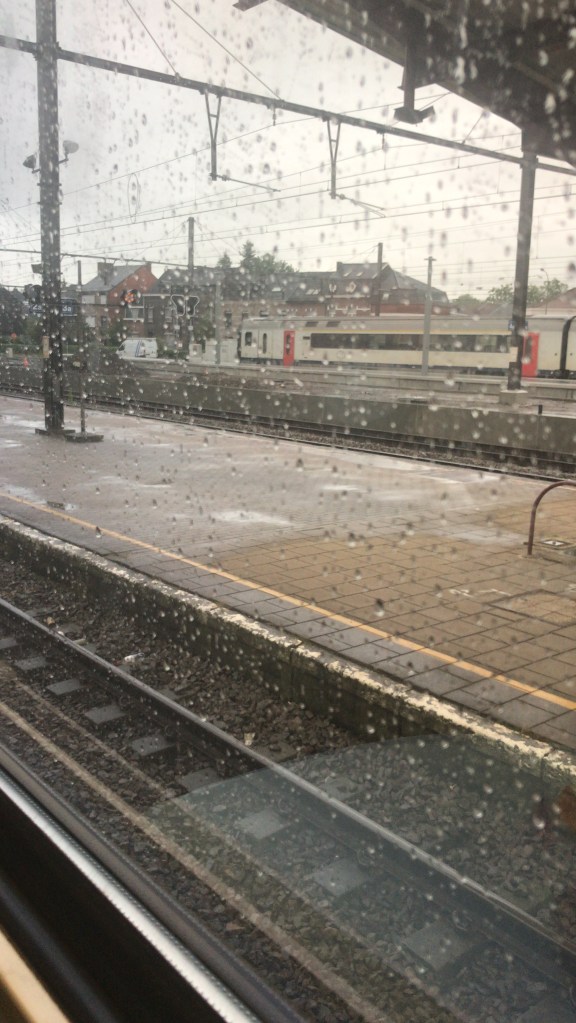 Alles heeft zijn charme, mijne kapitein met zijn regenvestje en zijne camera op zijne buik kon geen grotere toerist zijn in de gietende regen!!!! Alles kan, de madam naast ons was vervroegd teruggekeerd van haar werk in Brussel en wist niet of ze ging thuisgeraken!!!!!!!