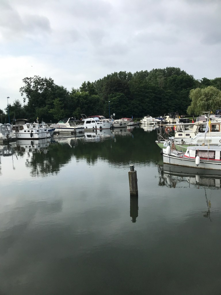 Eindelijk de passantenhaven ‘de blauwe kei’ is in zicht, wat steigers voor de vissers en dat is het. Maar wel in de bossen met veel suskewiets, mijne schipper geraakt zijn frustratie niet kwijt dat hij nooit meer iemand gaat volgen en ik kijk lijdzaam toe met een glaasje wijn.