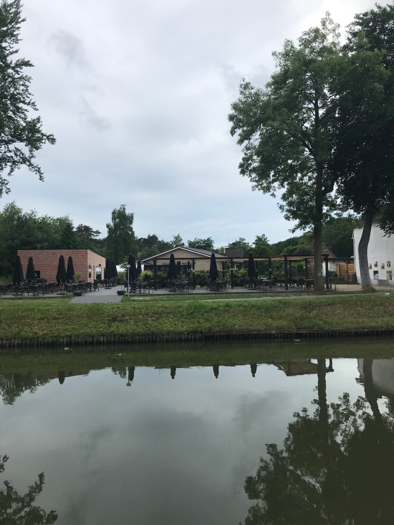 Het wordt smaller en smaller straks moeten we gewoon in de midden blijven liggen! Leopoldsburg is het einde van het kanaal van Beverlo oorspronkelijk gegraven om zwaar legermateriaal te vervoeren, maar ondertussen is dit sinds 1976 geen kampement meer het is wel nog het grootste oefenterrein van België.