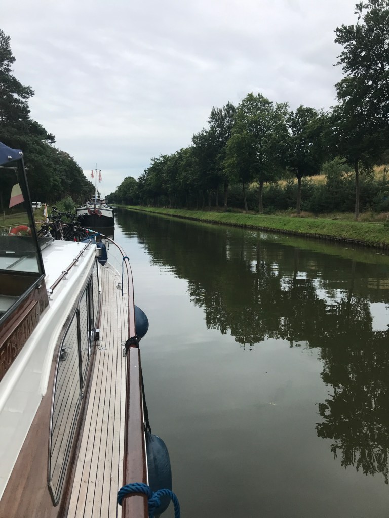 De schipper van voor ons komt een babbeltje slaan, we worden ondergedompeld in de ‘Vlaamse waterweg’. Het kanaal van Beverlo blijft er rustig bij, af en toe een binnenvaartschip die ons tegen de steiger duwt, maar verder, verder gaat alles goed.