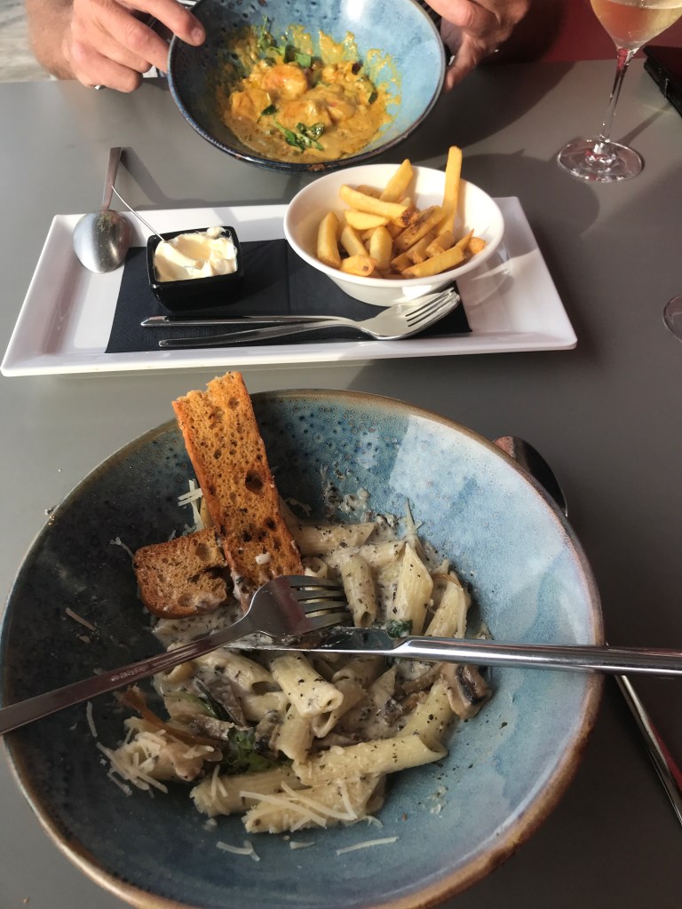 Koken zit er niet in vandaag dan maar naar het restaurant van de haven, oogt mooier dan dat het lekker is.