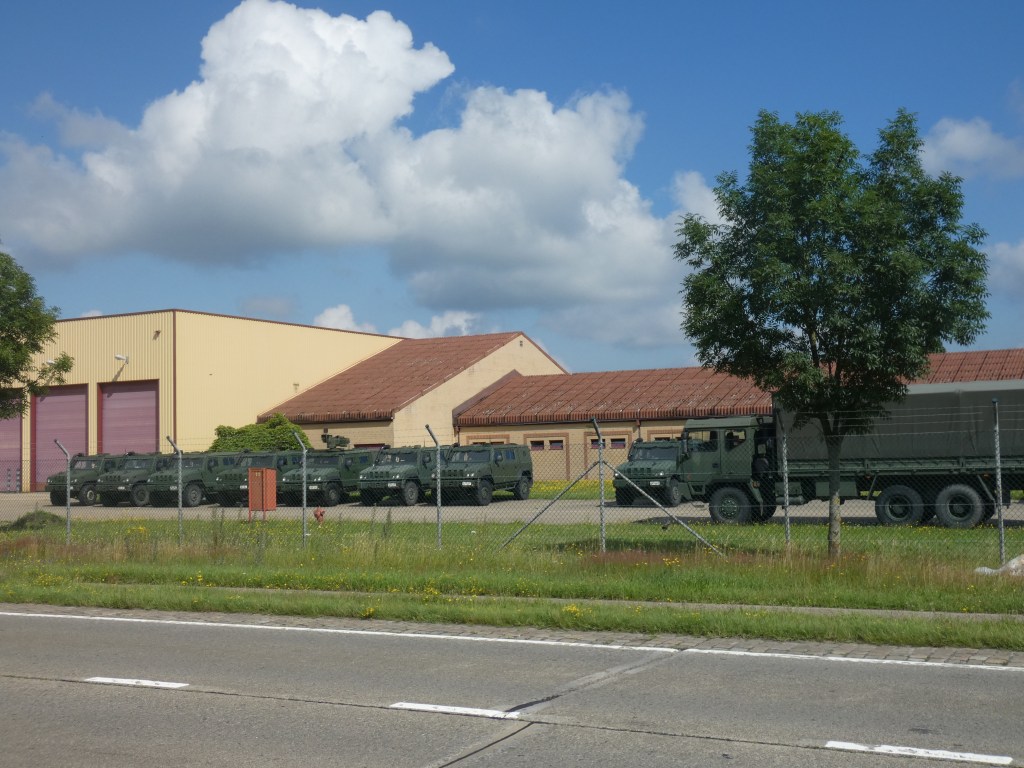Dwars door het kampement, 9 km met links en rechts prikkeldraad en afschrikkingsborden. Nogal imposant!