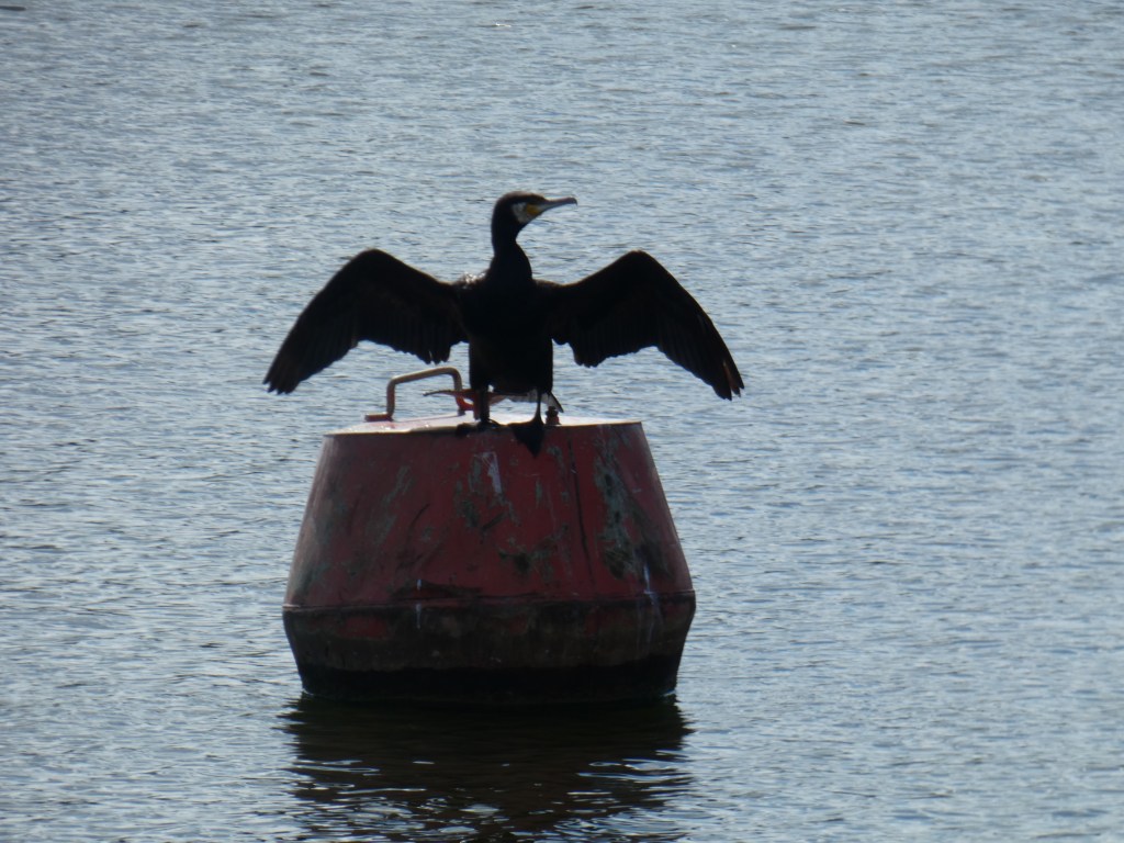 De Aalscholver droogt zich, de natuur trekt zich niks aan van al dat gedoe.