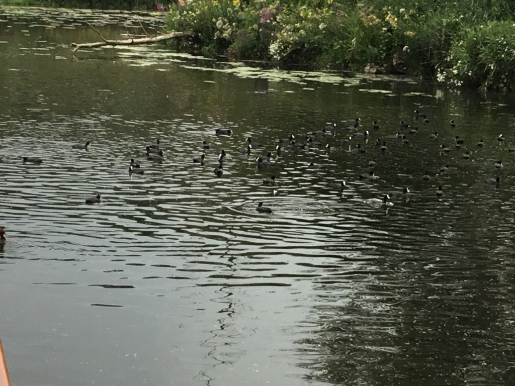 We spotten nog een onbekend vogeltje , suggestie’s zijn altijd welkom. De bever zwemt voorbij, de zwanenfamilie komt hun jongen nog eens tonen, de fuut blijft maar broeden; alles gaat verder.