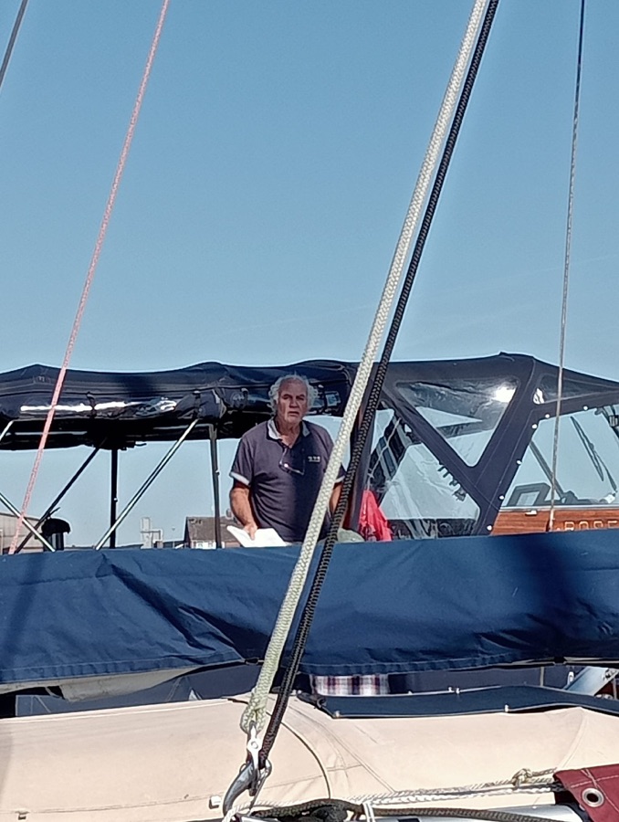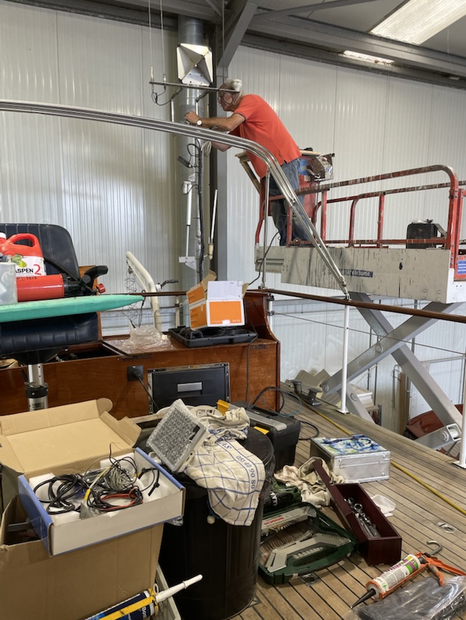 De schipper is nog druk bezig, de tent opzetten, navigatiesysteem en lichten monteren! Ondertussen bijna klaar met poetsen dat is ook al iets!