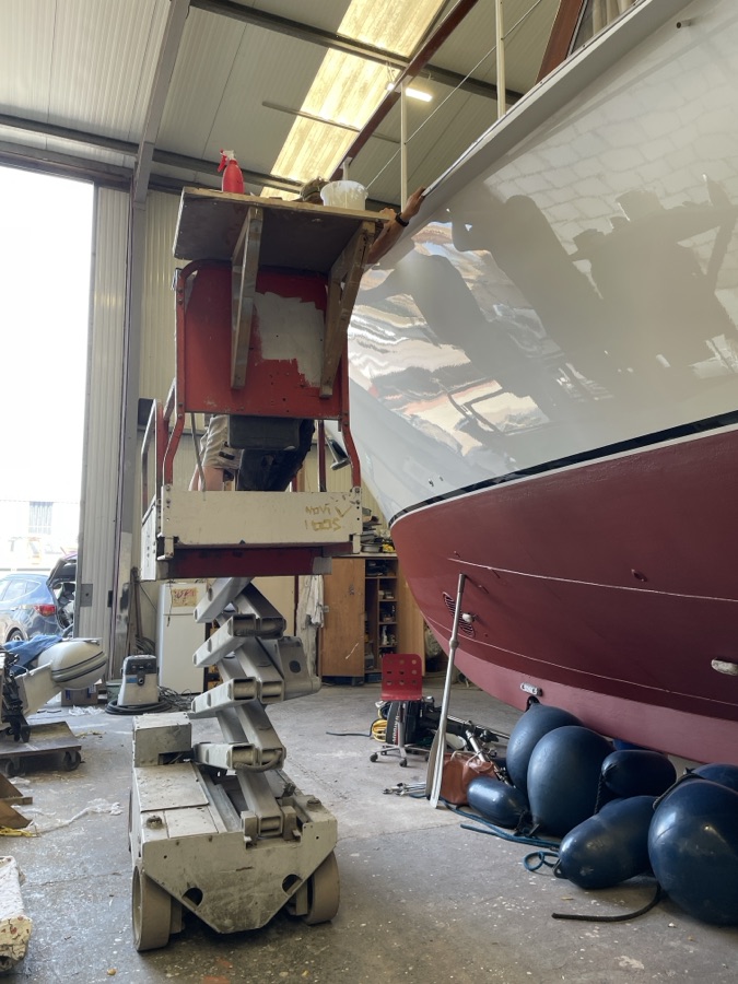 Changement van de planning, de schilder is ziek geworden deze namiddag dus gaat de boot maar morgennamiddag in het water, och ja we hebben tijd en slapen in een hotelletje hier niet ver vandaan in Oud maren.