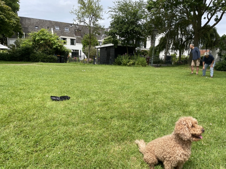 Zonder problemen vinden we een plaatsje, ideaal voor Missy een eigen grasplein en af en toe bezoek van een ander hondje, niet altijd haar beste vriendjes.