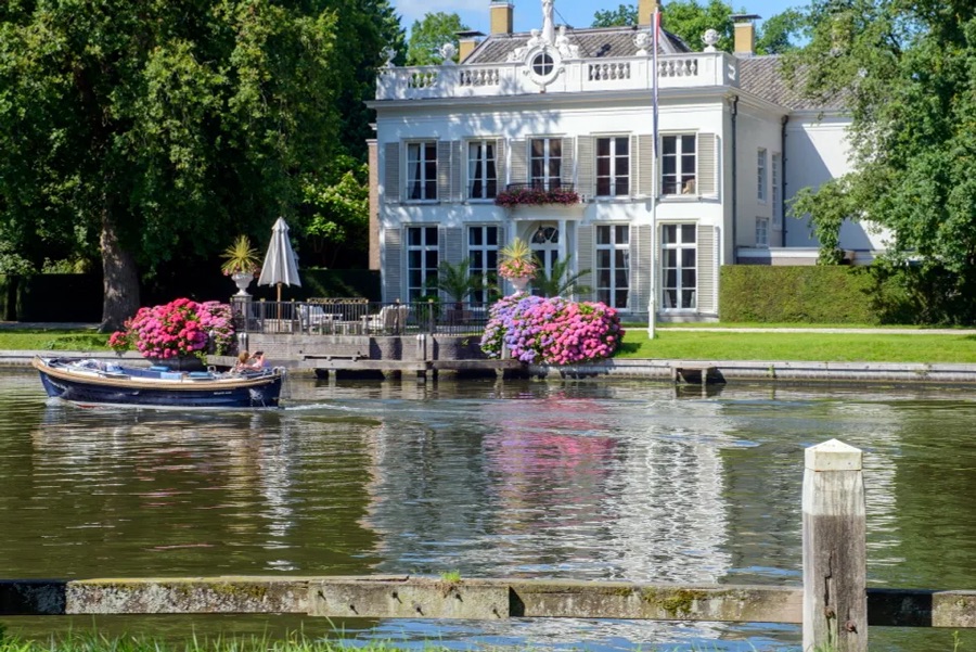Het clubhuis van de roeivereniging is even riant als de rest.