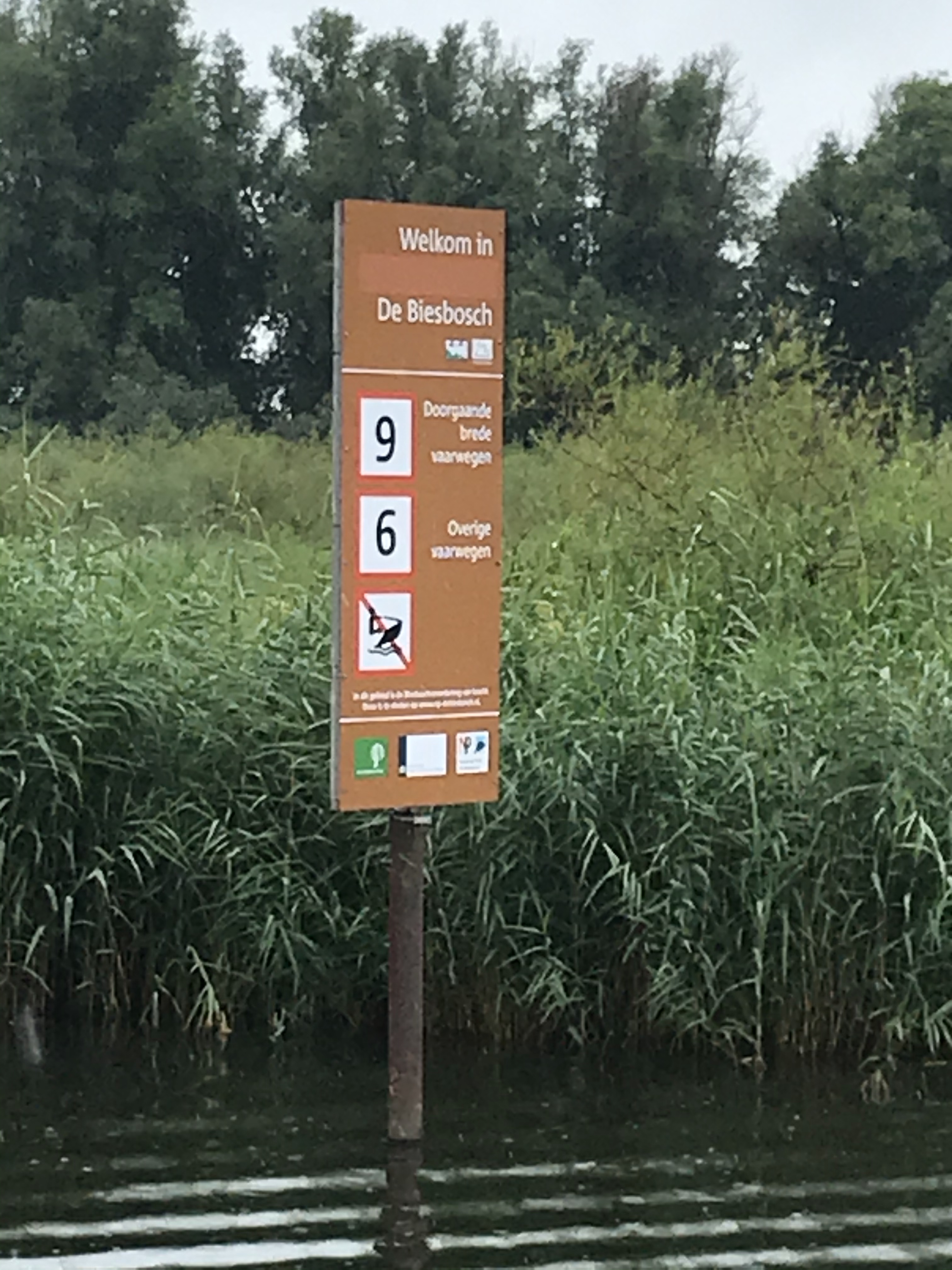 Niets houdt de Nederlander tegen om te varen, we worden omringd door sloepjes die de Biesbosch invaren, snelle jongens zitten er ook tussen, zodra het snelvaart is kunnen ze niet rap genoeg het gaspedaal indrukken. De sloepjes worden heen en weer geklost, amai hun maag! Dat zal dubbel ontbijt worden.