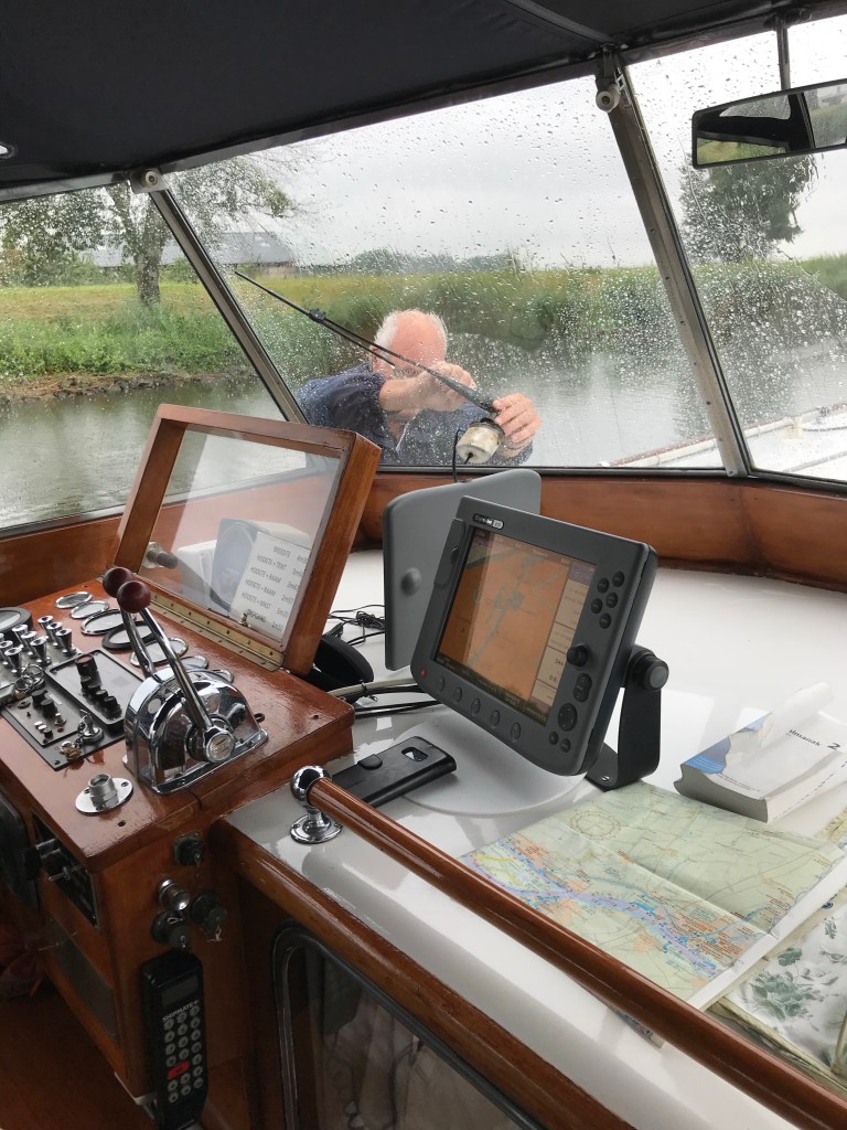 We komen min of meer droog terug aan de boot. Tijd voor een appelflap en koffie.