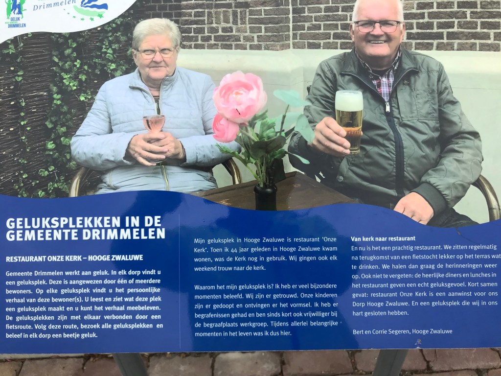 Dankzij het restaurant ‘De Kerk’ wordt er nieuw leven geblazen in het dorp. We komen de geluksroute tegen, verhalen van mensen uit het dorp met hun geluksplekje.