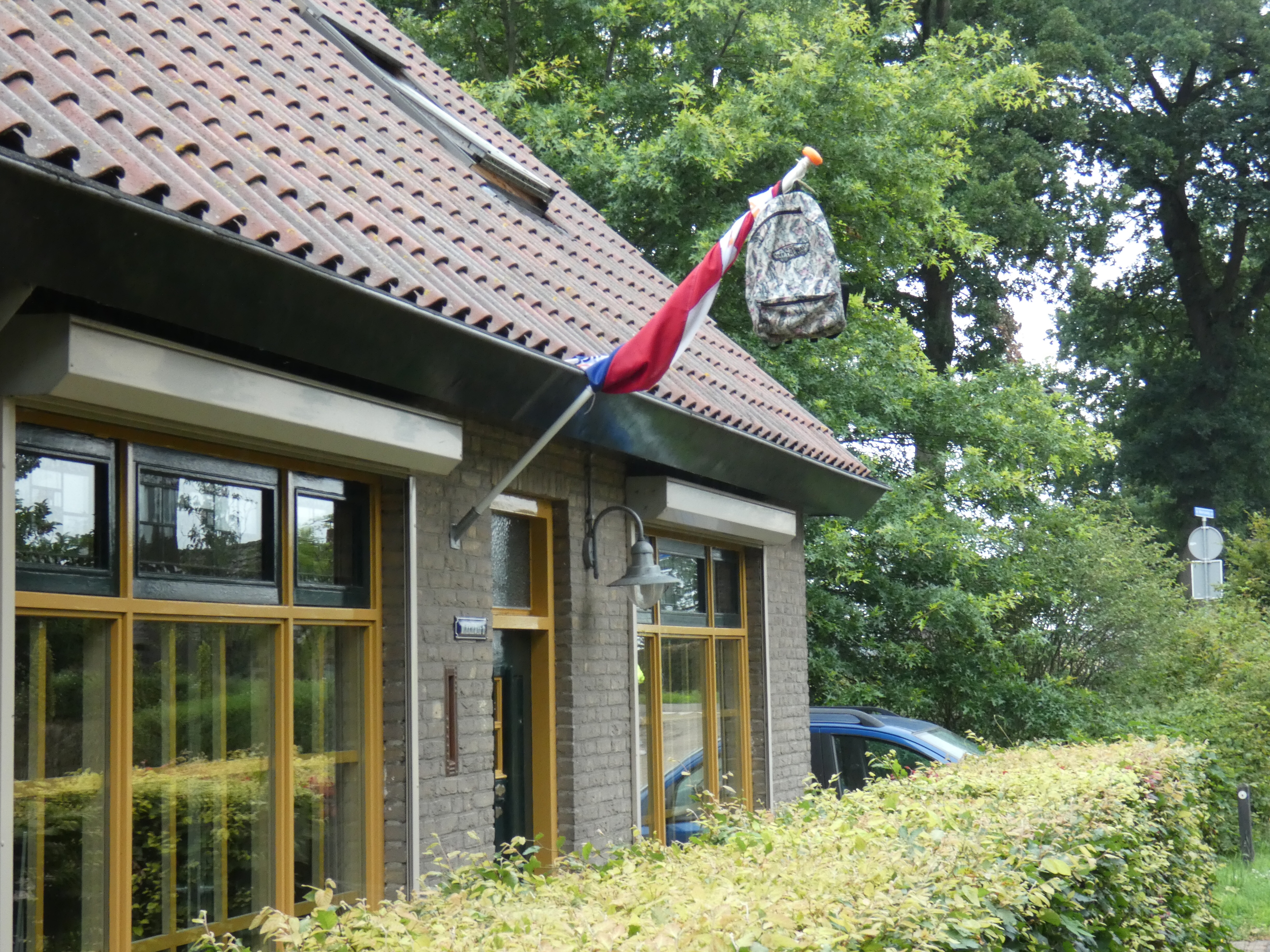 Onderweg zien we verschillende keren een rugzak aan de vlaggenstok hangen teken dat er een student middelbaar woont die geslaagd is.