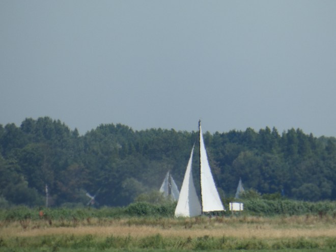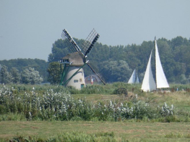 We zitten in het Groene Hart van Nederland, het land ligt hier dieper dan de afwateringskanalen een heel bizar beeld, plots zie je een zeil passeren over land.