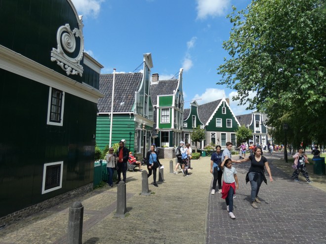 De Zaanse schans glijdt voorbij, de horden Japanners van de cruiseboten zijn reeds present.