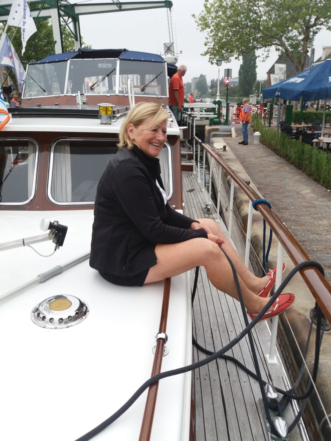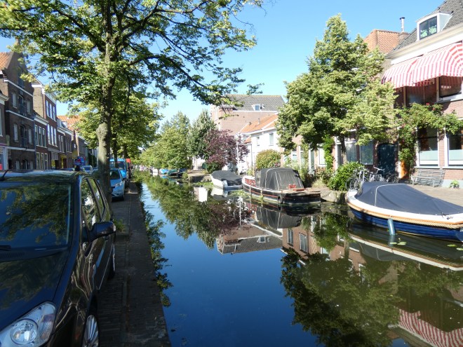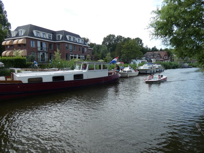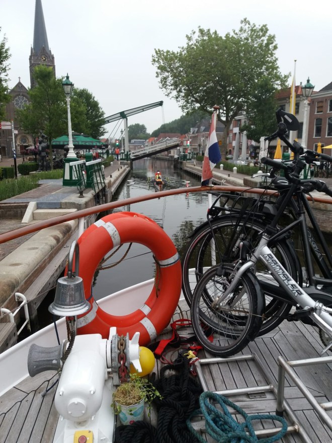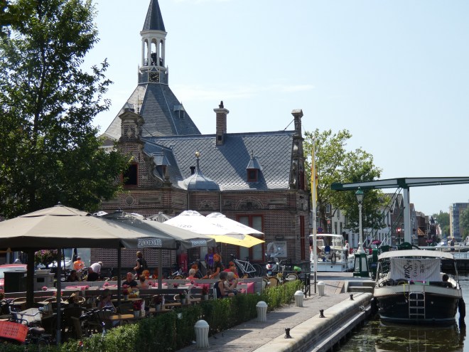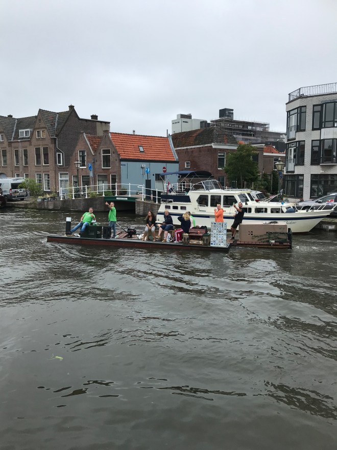 De plas slaan we over, geen weer om te zwemmen of te zonnen we varen onmiddellijk naar Leiden.