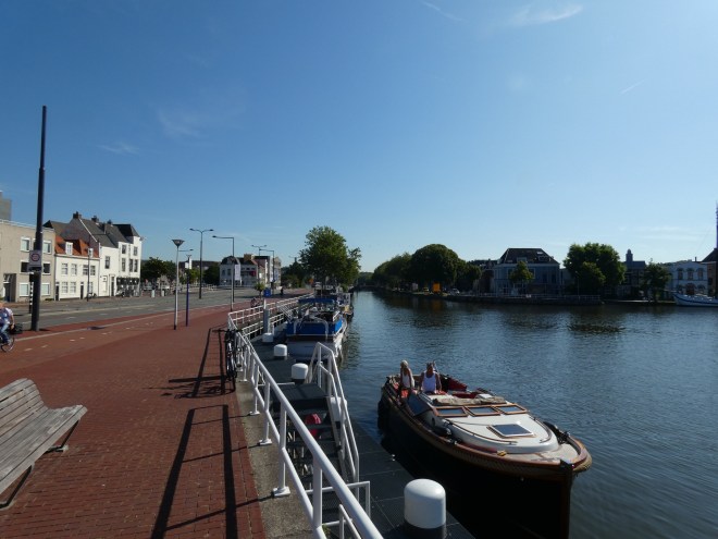 De passantenhaven in Leiden ligt praktisch vol, we meren aan bij de langssteiger.