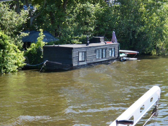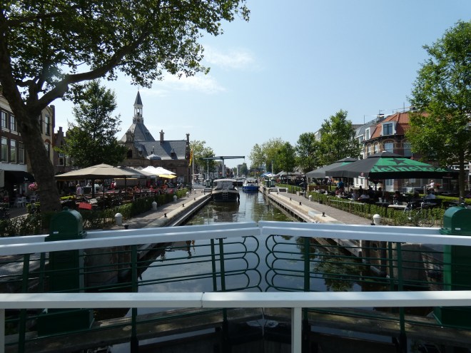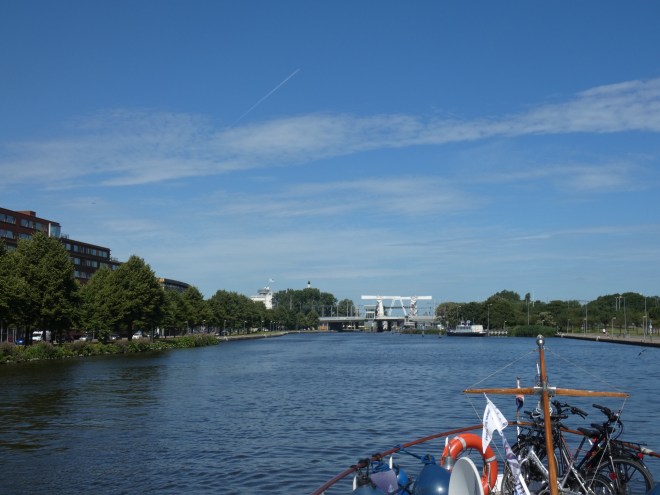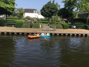 De plas slaan we over, geen weer om te zwemmen of te zonnen we varen onmiddellijk naar Leiden.