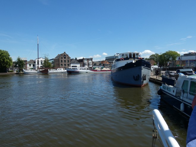 De passantenhaven in Leiden ligt praktisch vol, we meren aan bij de langssteiger.